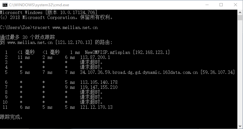 通過向目標主機發(fā)送不同IP生存時間,TTL值的ICMP回應數(shù)據(jù)包, Tracert診斷程序確定到目標主機所經(jīng)過的路由。在數(shù)據(jù)包傳輸中所經(jīng)過的每個路由器在轉發(fā)數(shù)據(jù)包之前要將數(shù)據(jù)包上的TTL值減1。當數(shù)據(jù)包上的TTL值減為0時,路由器應該將“ICMP已超時”的消息發(fā)回源系統(tǒng)。